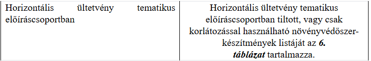 Azon készítmények használata, amely a táblázatban külön jelölés nélkül szerepel, tiltott. A megjelölt készítmények a jelölés szerinti korlátozással használhatóak.